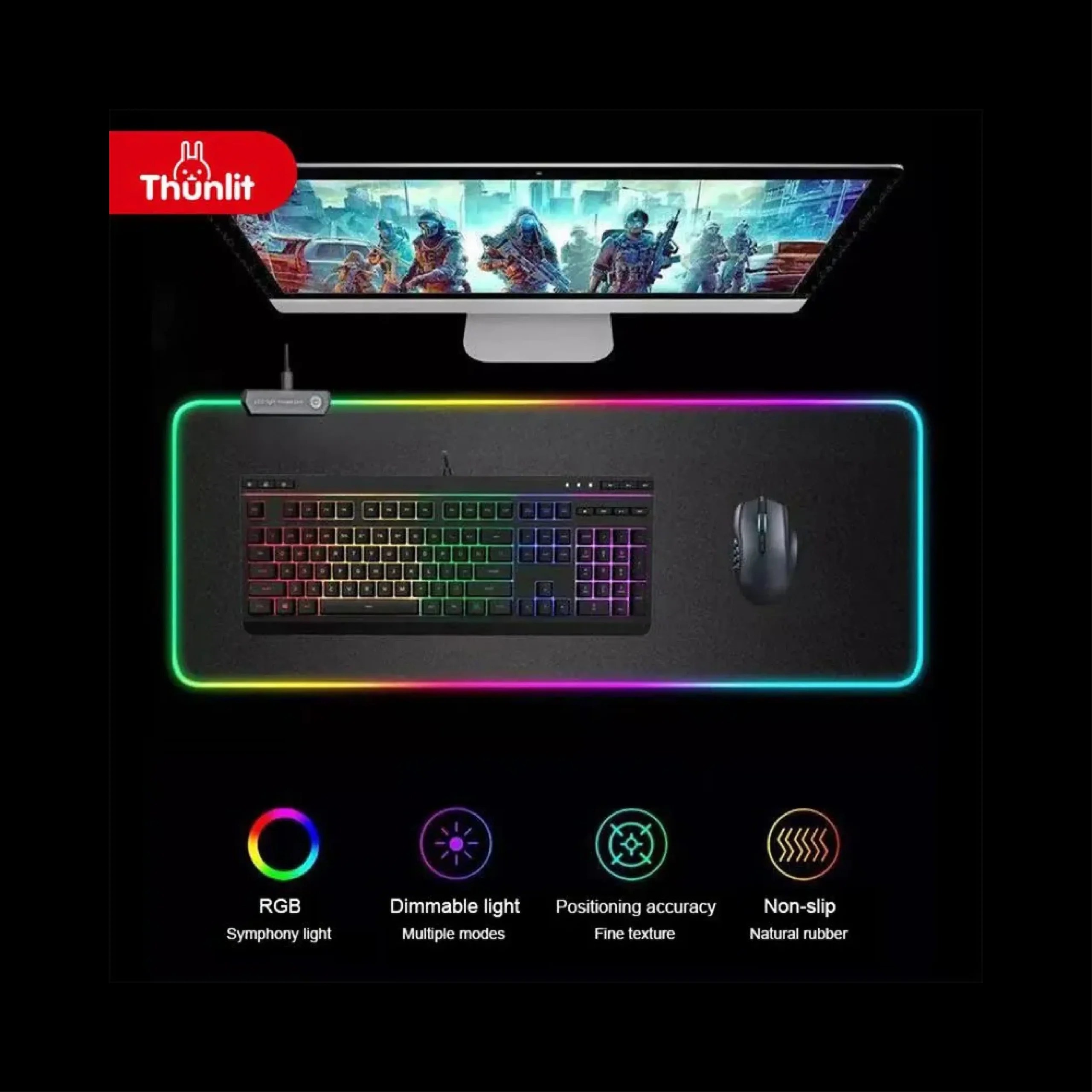Mejora tu experiencia de juego con nuestro Pad de Mouse RGB, diseñado para ofrecer precisión, estilo y funcionalidad avanzada. Este pad no solo mejora el rendimiento de tu mouse, sino que también ilumina tu espacio de juego con efectos de iluminación RGB personalizables, llevando tu configuración a un nuevo nivel de inmersión y estilo.